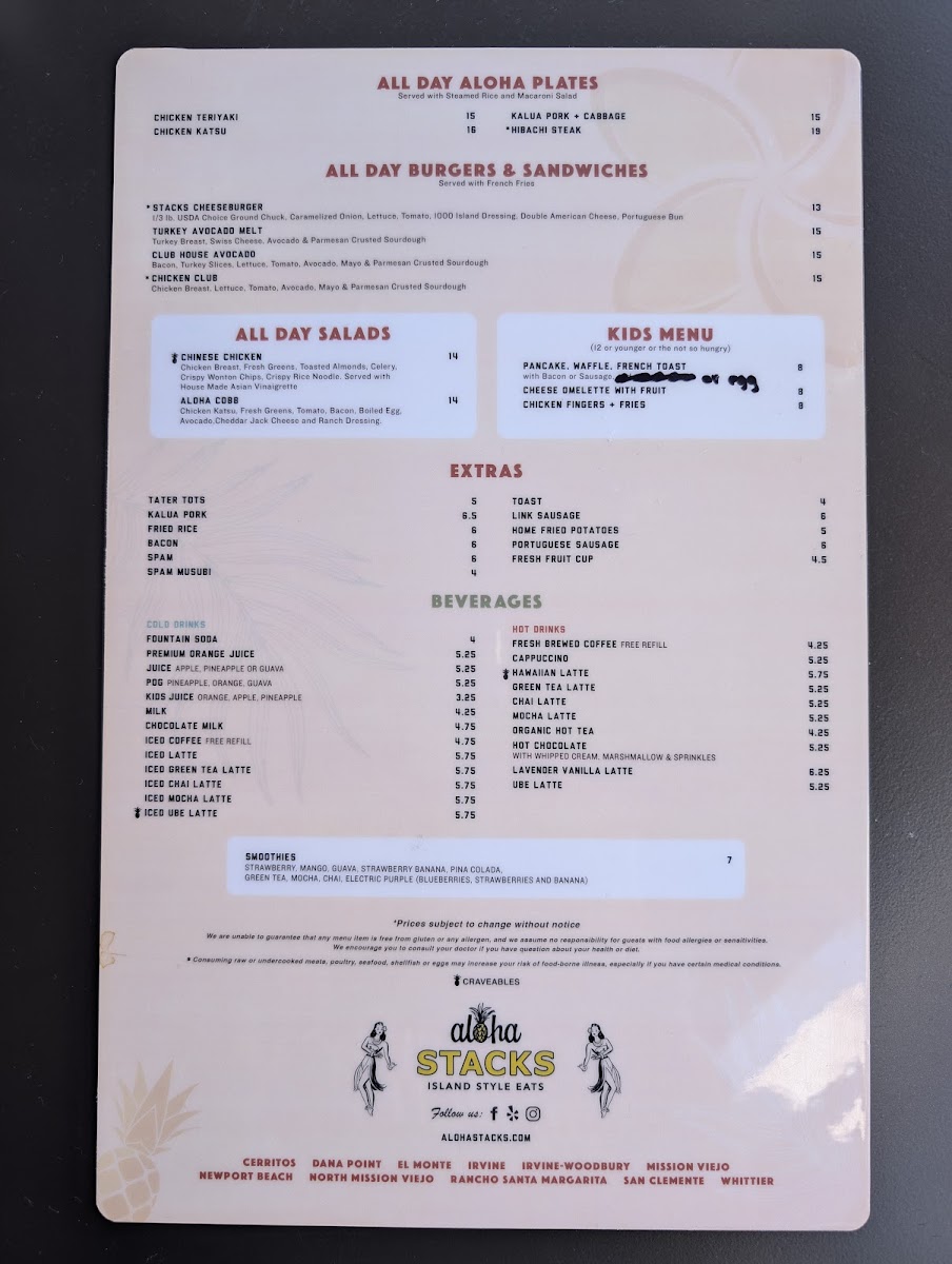 Stacks Pancake House Menu